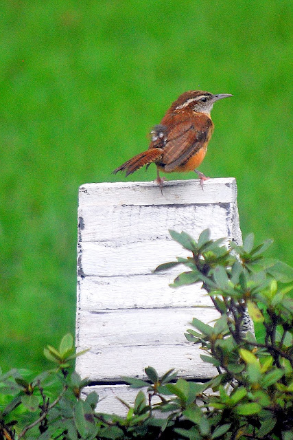In my garden, which you may find hard to believe, it blends in with everything else. Angela, when I was over there, said the same thing before I even mentioned it. So, we shall see--the blue is similar to the bird bath color, the green is a close match to our door color. Decisions, decisions!