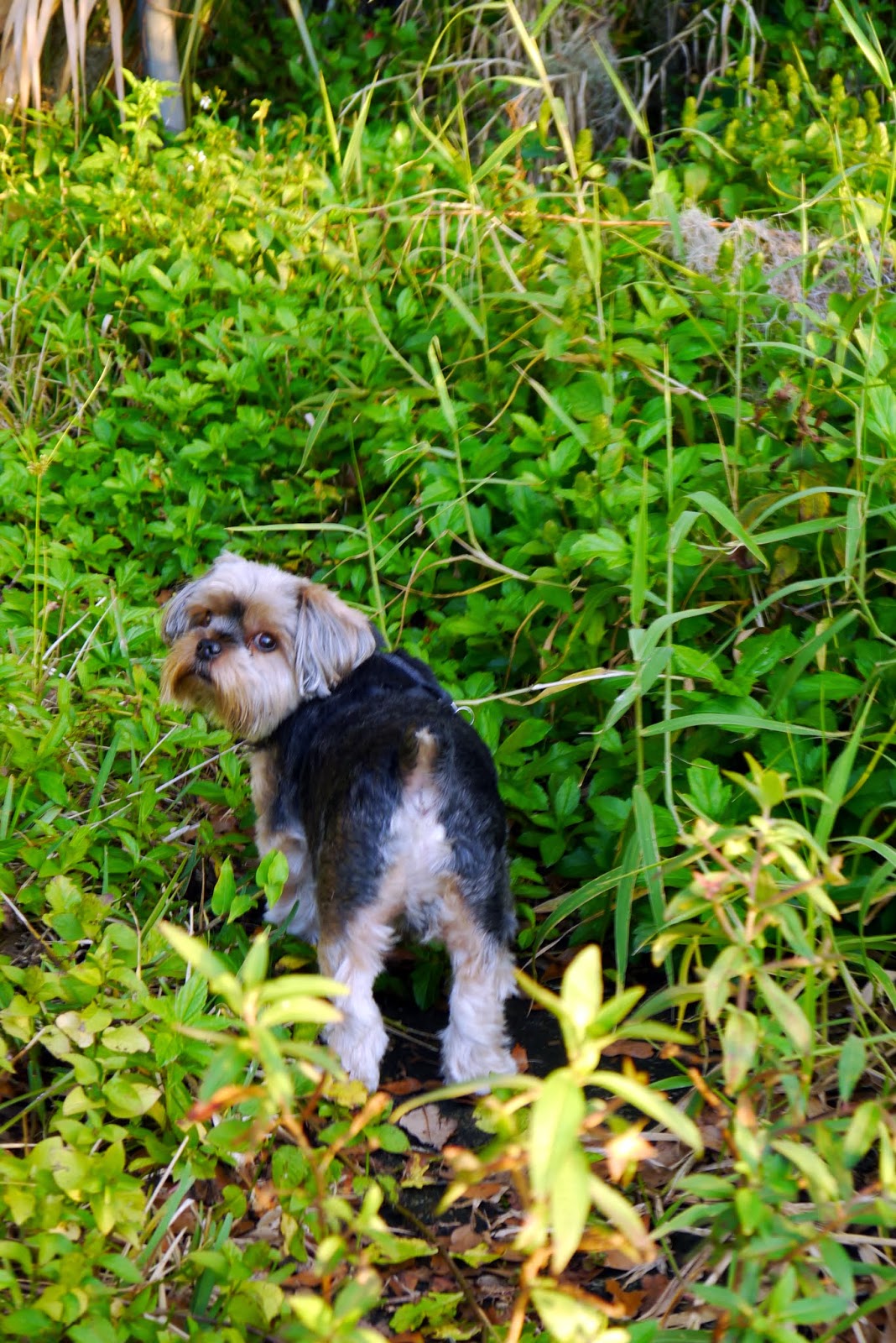 The lake lot is once again overgrown, not so much as in the warmer months, but still, the grass is getting high. Just ask Baxter: