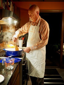 Followed by dinner and the game, over at David, (pictured below being chef for the night), and Cheryle's home.