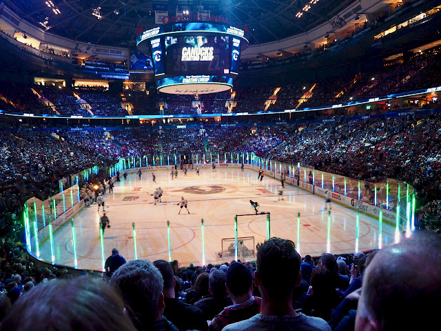 Another cool thing that happened on Friday was that Bruce was given two tickets to the Vancouver Cannucks hockey game at Rogers Arena for Saturday afternoon. Never having been to a hockey game before, I was delighted. The whole experience was fantastic, with a fast paced game against the Toronto Maple Leafs, whose fans outnumbered the Cannucks, btw.