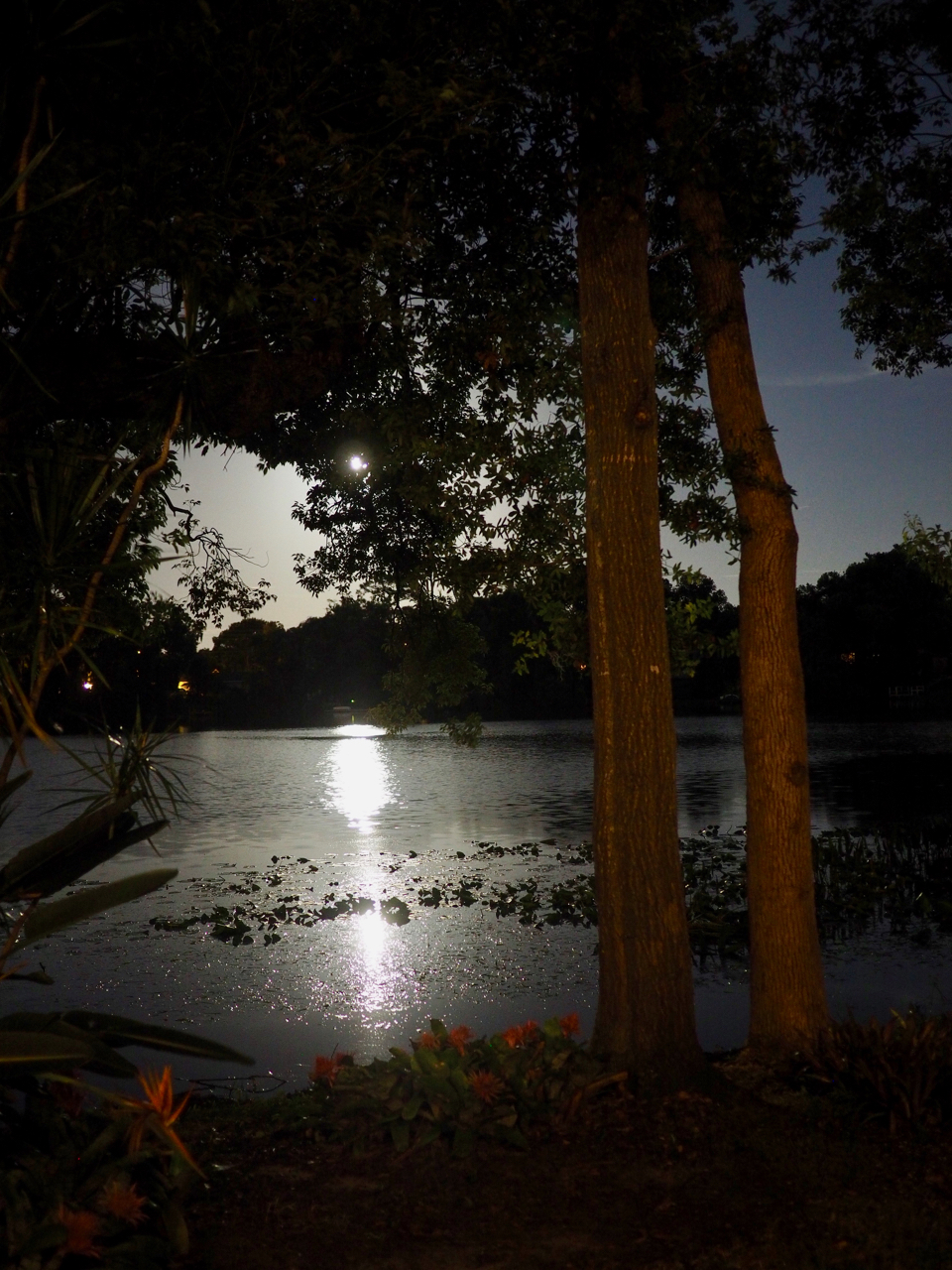 If the sunrise over the lake is not enough to keep a girl happy, the full moon the other night was so bright, I merely took the reflection.
