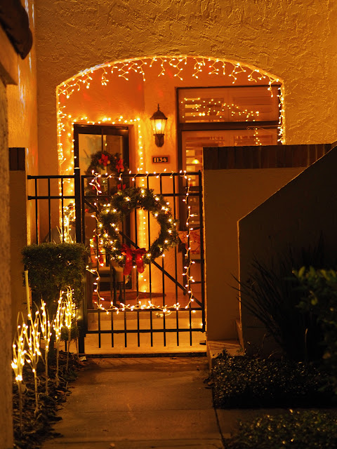 Michelle saw my choices and questioned if I was really set on the gold as she does not share my same enthusiasm for color. My reply was, I thought it was worth a shot! Because I was not preparing Thanksgiving dinner for a crowd, after dinner Wednesday night, we went over to Dave and Michelle's place for a visit and to see their beautifully decorated condo, beginning with the outside,