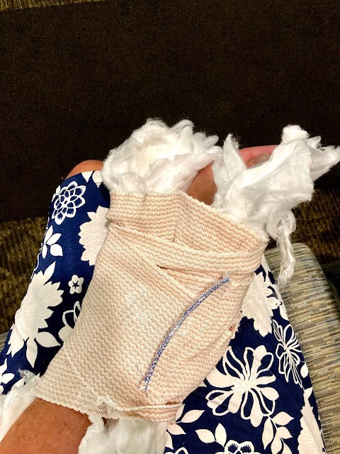Ha ha, little did I know that it would get much worse in spite of icing and elevation. The good news is that this morning I am cautiously optimistic that it is receding a tiny bit. Bruce has been so worried, especially when I move my arm while sleeping, waking him with my moaning.  Who knew how difficult this would be??