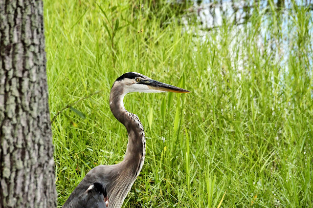 You just know I had to stop and read this one in its entirety. Across the street there used to be a little beach for swimming that is now closed because of the potential for an alligator encounter. Seems like that warning is happening more and more on our lakes. Good thing that when we were young, long before air conditioning became the norm, swimming in lakes to stay cool was encouraged. The gigantic oaks in the area are really special.Leaving there, we drove all through Belle Isle, an unexplored area to us. Turns out there are some gorgeous lakeside neighborhoods, one where you could see the downtown skyline through the trees.Another day when Bruce was working at the church I re-visited a tiny park in Dover Shores where I am thrilled to say that I saw an immature Cooper's Hawk for the first time. At least that is what I'm surmising after searching for a hawk in Florida with an extra long tail.As I walked along, I came across an Egret that seemed like something wasn't quite right with the one leg held out behind. Indeed, when it allowed me to cross the bridge without budging, I knew it most definitely had some sort of disability. Poor thing.Another day Bruce went out with Keith on the Conway chain of lakes, in order for Keith to test out his pontoon boat before a scalloping trip to Cedar Key. Once back at their home, he noticed something for the first time and that was the fireplace. What he realized, after a full examination, is he was sure that he and his old friend Herbie built it!!! He began questioning Patty, whose family has owned the home for decades, whether there was a deck out back and he went on to describe his memory. Sure enough, it was one and the same. He couldn't wait to return home and call Herbie to confirm his memory, that is if he could find him as they lost touch years ago. I am describing the time when our children were but toddlers and they not only worked at a place called Presentation South, but did side jobs together, the above being one of them. A Google search brought up sad results. He died seven years ago. Looking at the picture with his obituary, I was reminded of one I had of him from those long ago days.From left to right, Bruce, Herbie and brother Cris, taking a break from digging a huge new drain field. Needless to say, it was not what Bruce was hoping to find.In that same photo album I came across this oldie, but goodie. I think Bill (l) and Dave(r) were about three months old, while Momma was a mere 25.