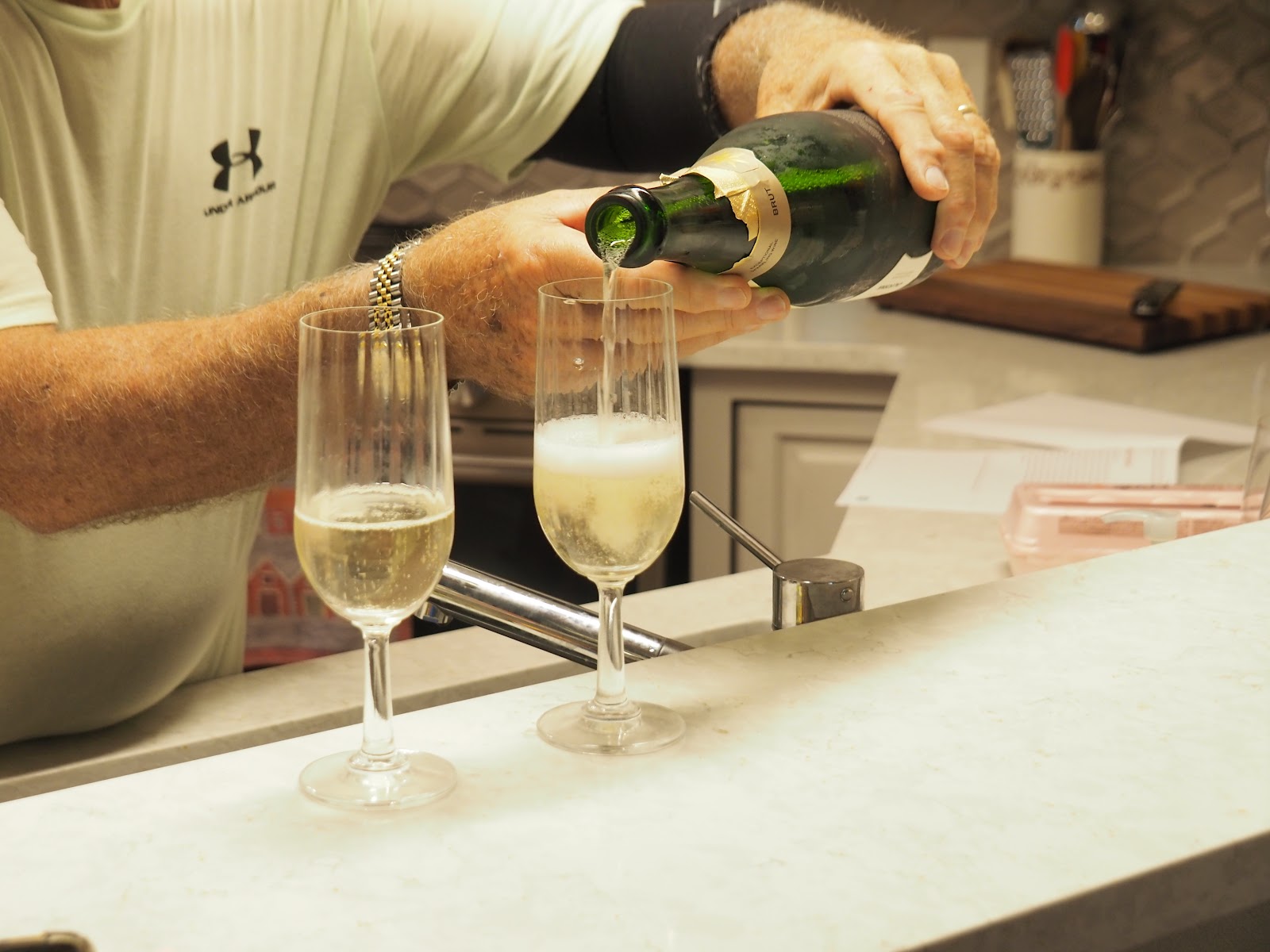 We interrupt this Christmas post to show you one from our last camping trip that Alissa liked when she saw it on my computer this afternoon.Back to the here and now, one afternoon, following my dental cleaning appointment, I stopped by the "peacock" neighborhood and was not disappointed as there were close to 50 between the two streets where they mostly hang out. Hanging out is just what they were doing on that gloomy afternoon. Looking pretty doing so, I might add.Jonathan and Alissa were set to arrive on Friday evening but with the challenging weather around the country their flight was delayed until after our bedtime. Uber to the rescue. Earlier in the evening, as the temperature began falling, I stopped by the lake for sunset. Too cold for me to actually stay until the sun dropped below the horizon though! A freeze, caused by an Arctic blast of air from the North, was in the forecast for that night.The beautiful day finally arrived however our gift exchange was delayed because Bruce and I attended church, as if it were any old Sunday. Most people apparently attended the Christmas Eve candlelight service as there were but 20 of us in attendance! In spite of the few parishioners it was a lovely service.Reverend Garvey, as you can see, was in a very casual mood in dress but not in his message. Chilly, chilly chilly that morning. Some people might even call it cold, although I relish the falling temperatures because I am hot for so many, many months. The family arrived at our home around lunchtime and it was one of the best Christmases that I can remember. Gifts galore, including ones wrapped by Michelle for her first foray into wrapping after having a lesson from her father-in-law. (the black paper up top) That, in itself, was very thrilling. Because I did not organize any formal shots, after recently being chastised by a family member for including a photo found less than flattering, I will skip the ones I did take, instead I'll include one more of that fantastic wrapping done by this blogger''s dear husband.More lovely days have passed since Christmas which I will talk about next time, but suffice it to say, if the next week is anywhere near as nice, we will be starting the new year off in good form.I began this post days ago but now finishing it up, Jonathan and Alissa are out meeting up with college friends whom they will attend the FSU bowl game with. Matthew and Tom are on a plane, flying across the mighty Atlantic and should arrive later this afternoon. For a few short hours, all four of our sons will at least be in the same zip code, something that has not happened since Bill and Fallon married.