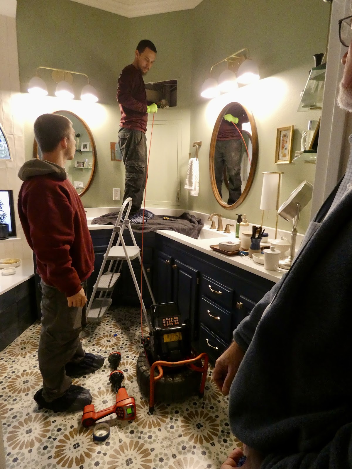 Growing tired of looking at images, I began playing solitaire, an unusual pastime for me. That is except for when the bird lover in me finds a deck of Audubon playing cards at Marshals and must use them ASAP. Aren't they gorgeous?While they may be gorgeous, I believe they are cursed! Hand, after hand, after hand, so many I quit counting, were a bust. Honestly I have never played so many hands of solitaire in my life and it was not because I was winning! Eventually I was so desperate to win, maybe a slight exaggeration but still, I got out another pretty deck to try my luck. Whew! London for the win!! It was those beautiful bird cards after all.Using something tactile makes me so sad sometimes as I think of how much our world has changed. Instead of beautiful or interesting cards, people stare at screens. No more beautiful pens/stationary, notebooks, well, books for that matter, to savor another person's creativity or skill. Modernity doesn't always mean beauty, but it does mean convenience which some would say is very much worth the trade off. Am I being an old fuddy-duddy?It is highly unlikely that next Monday afternoon I will be sitting at my desk writing a blog post. And why is that Gail, you ask? Sadly it turns out that our plumbing issue is far more complicated than I ever thought possible. Maybe Wednesday or Thursday morning, Harvey Baker plumbing showed up with this in tow.